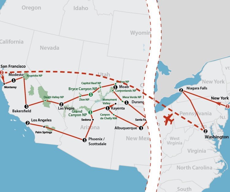 – Combineer New York, Washington en Niagara Falls met het zuidwesten van Amerika